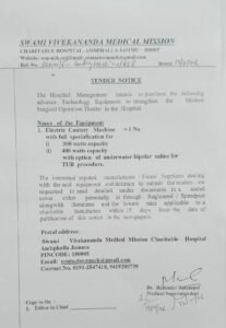 In continuation of the Tender Notice dated 07-02-2026, it is hereby informed that there is a modification in the technical requirement of the following equipment: